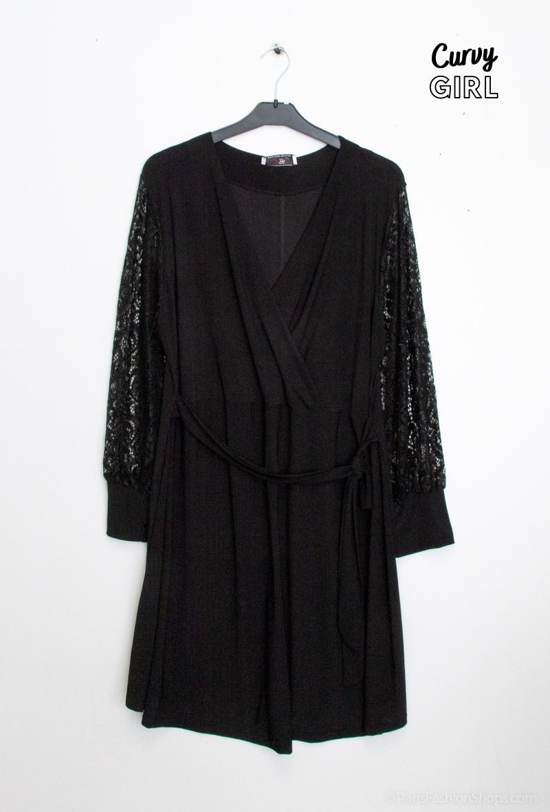 CURVY GIRL BELTED PUFF SLEEVE LACE DRESS