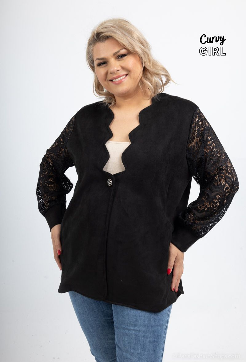 CURVY GIRL SUEDE LOOK JACKET WITH LACE
