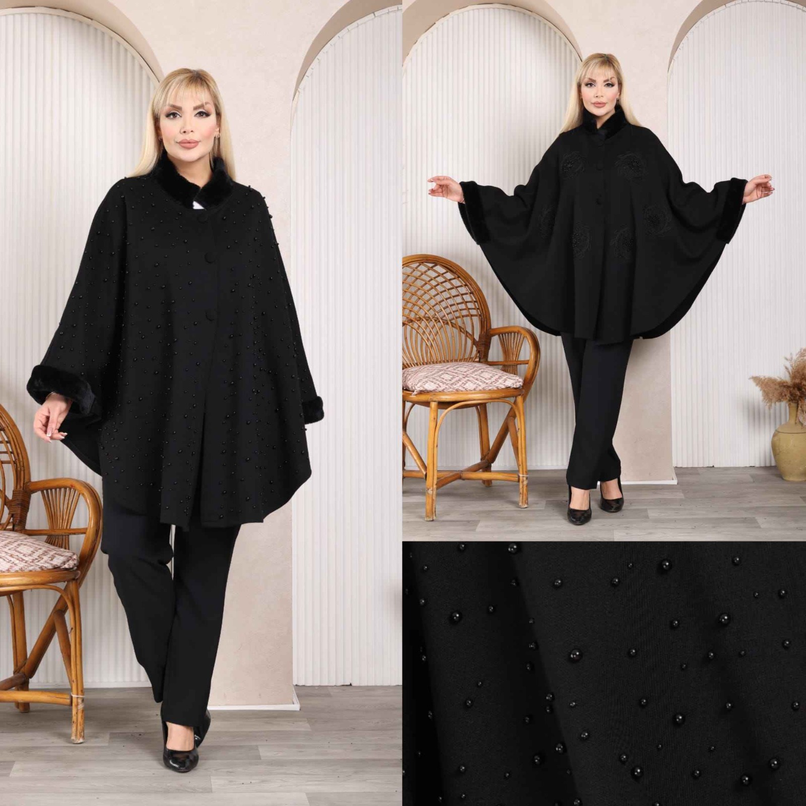 CURVY GIRL CLASSY CAPE FINE QUALITY WITH BLACK PEARLS & FUR