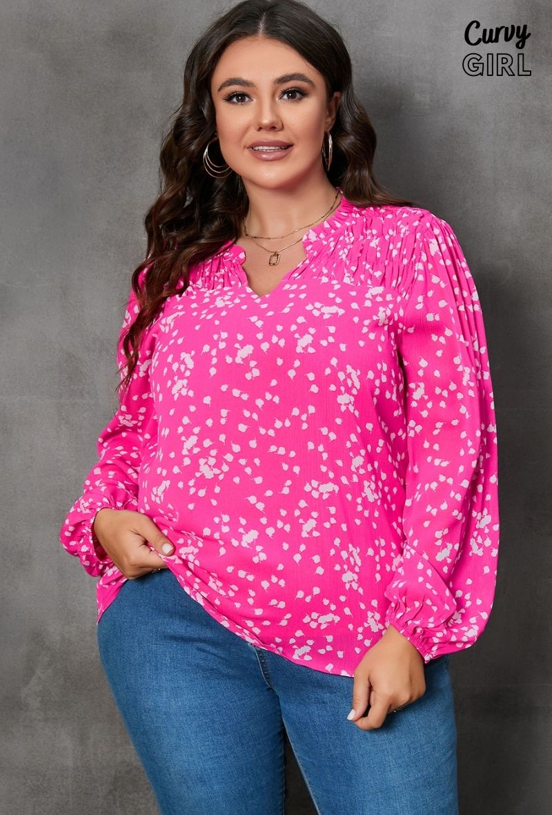 CURVY GIRL FLORAL RUCHED BLOUSE