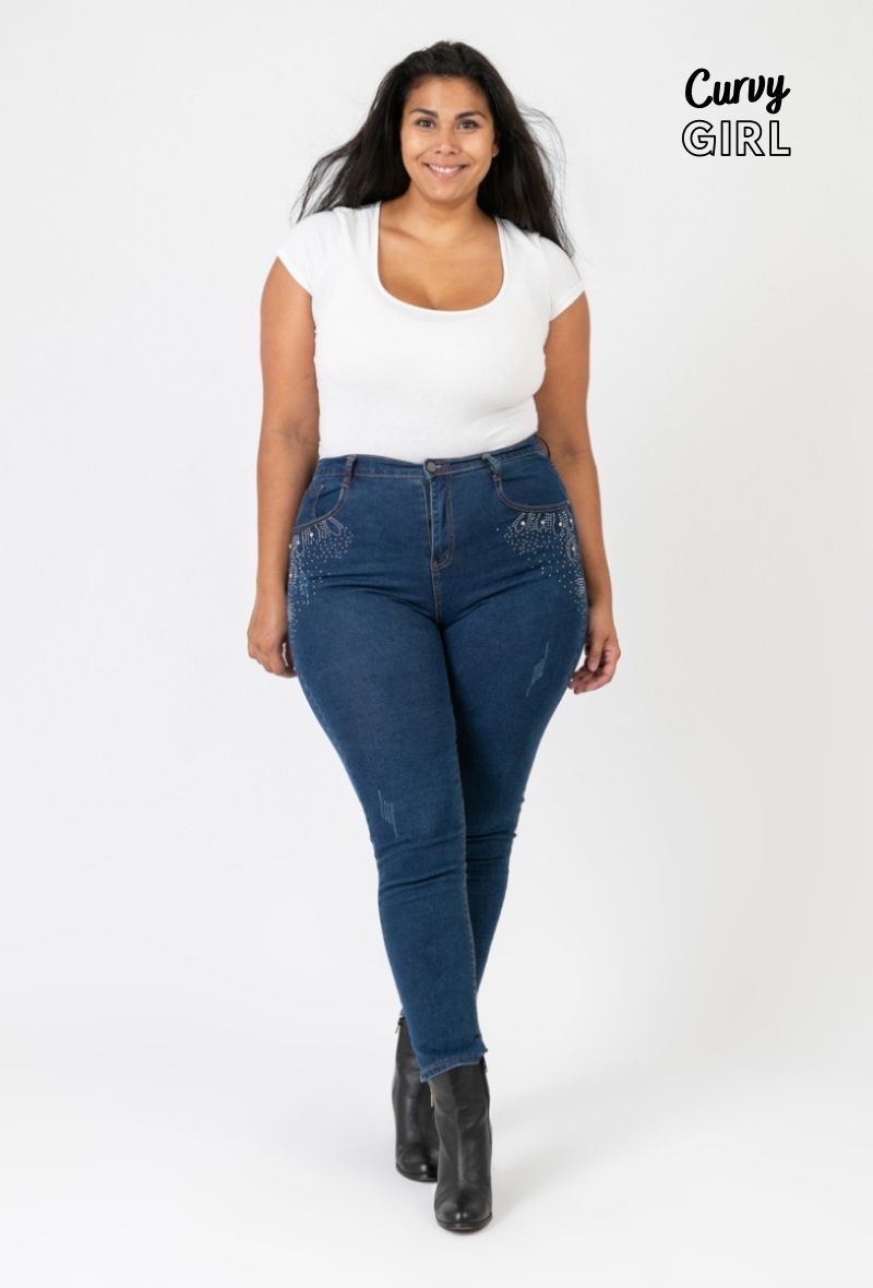 CURVY GIRL ULTRA STRETCH DENIM JEANS WITH RHINESTONES