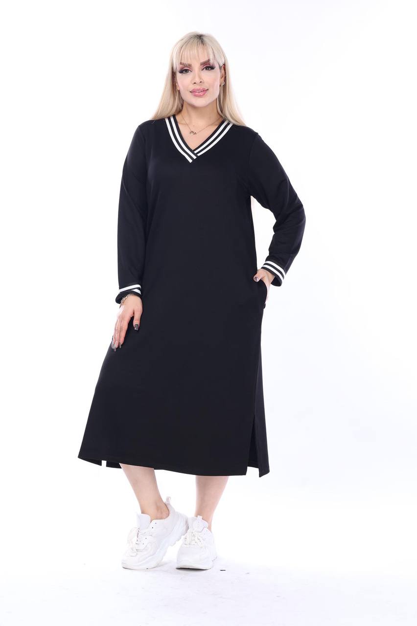 CURVY GIRL V NECK DRESS WITH STRIPES