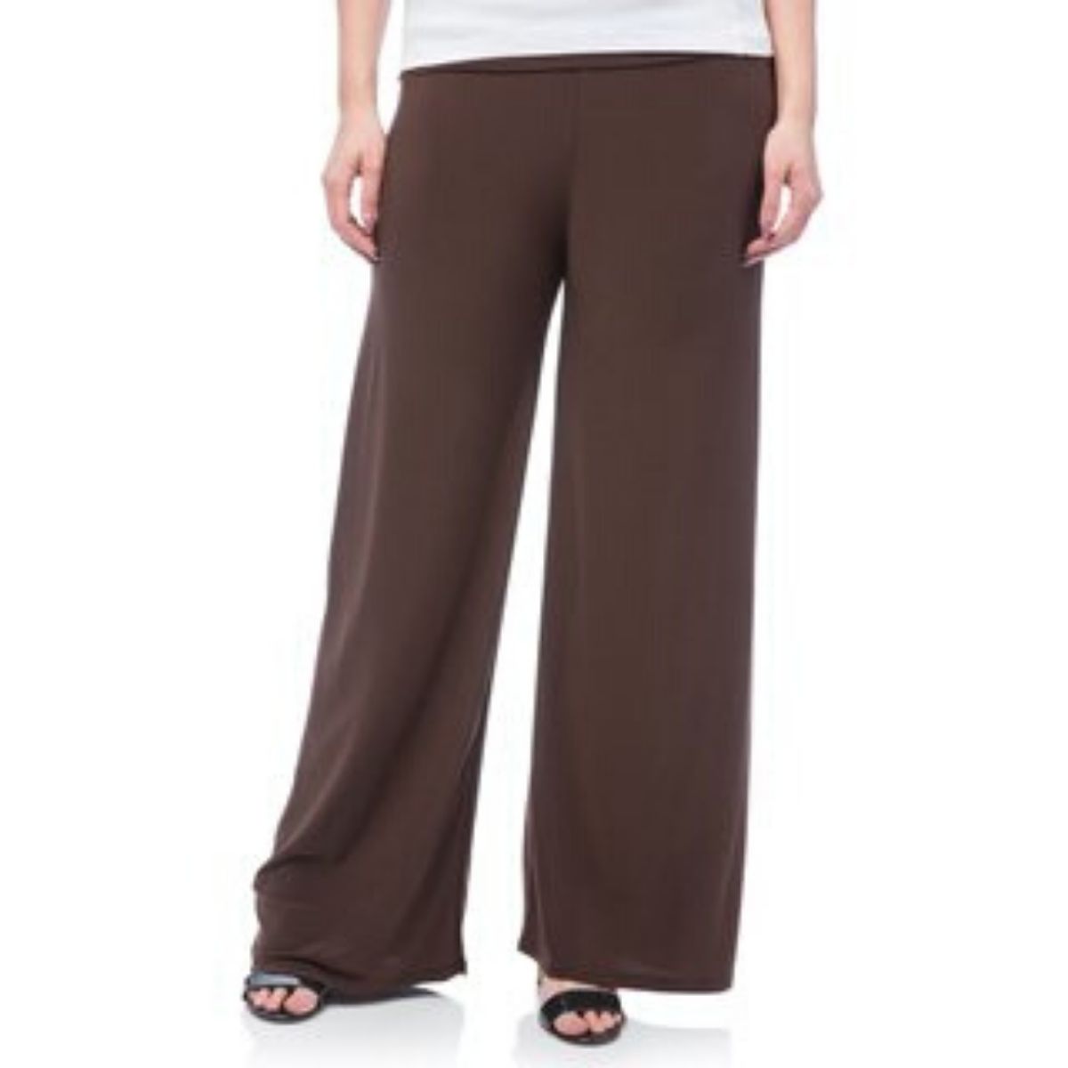 PULL UP WIDE FIT STRETCH TROUSERS - BROWN