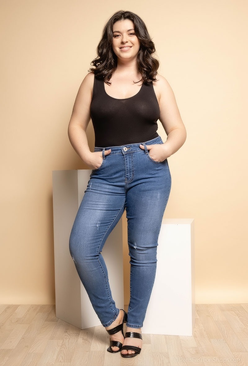 CURVY GIRL RIPPED BLUE JEANS