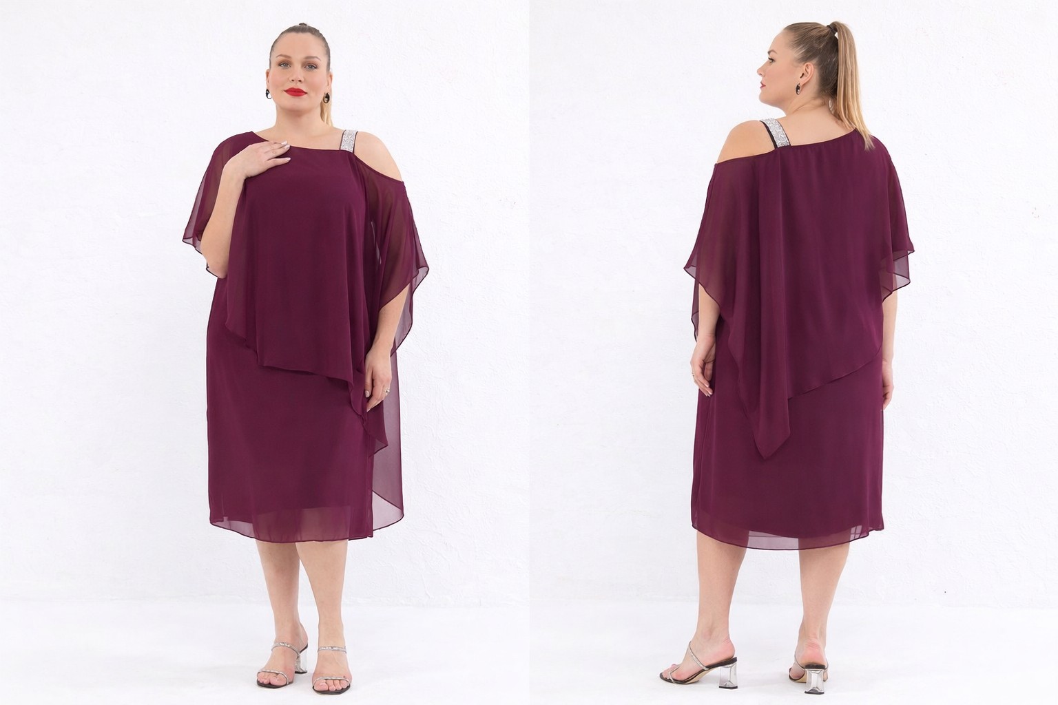 CURVY GIRL CHIFFON DRESS WITH SPARKLES ON SHOULDER