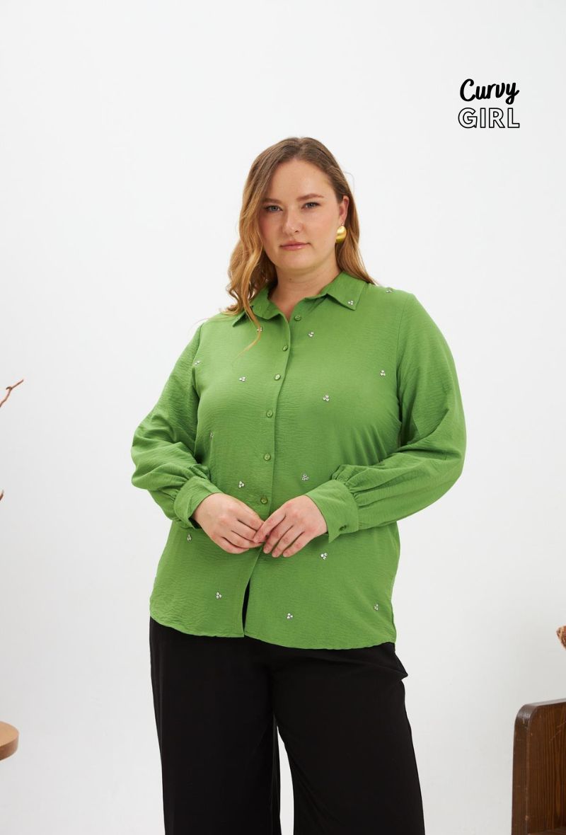 CURVY GIRL ELEGANT BLOUSE WITH SPARKLY CRYSTALS